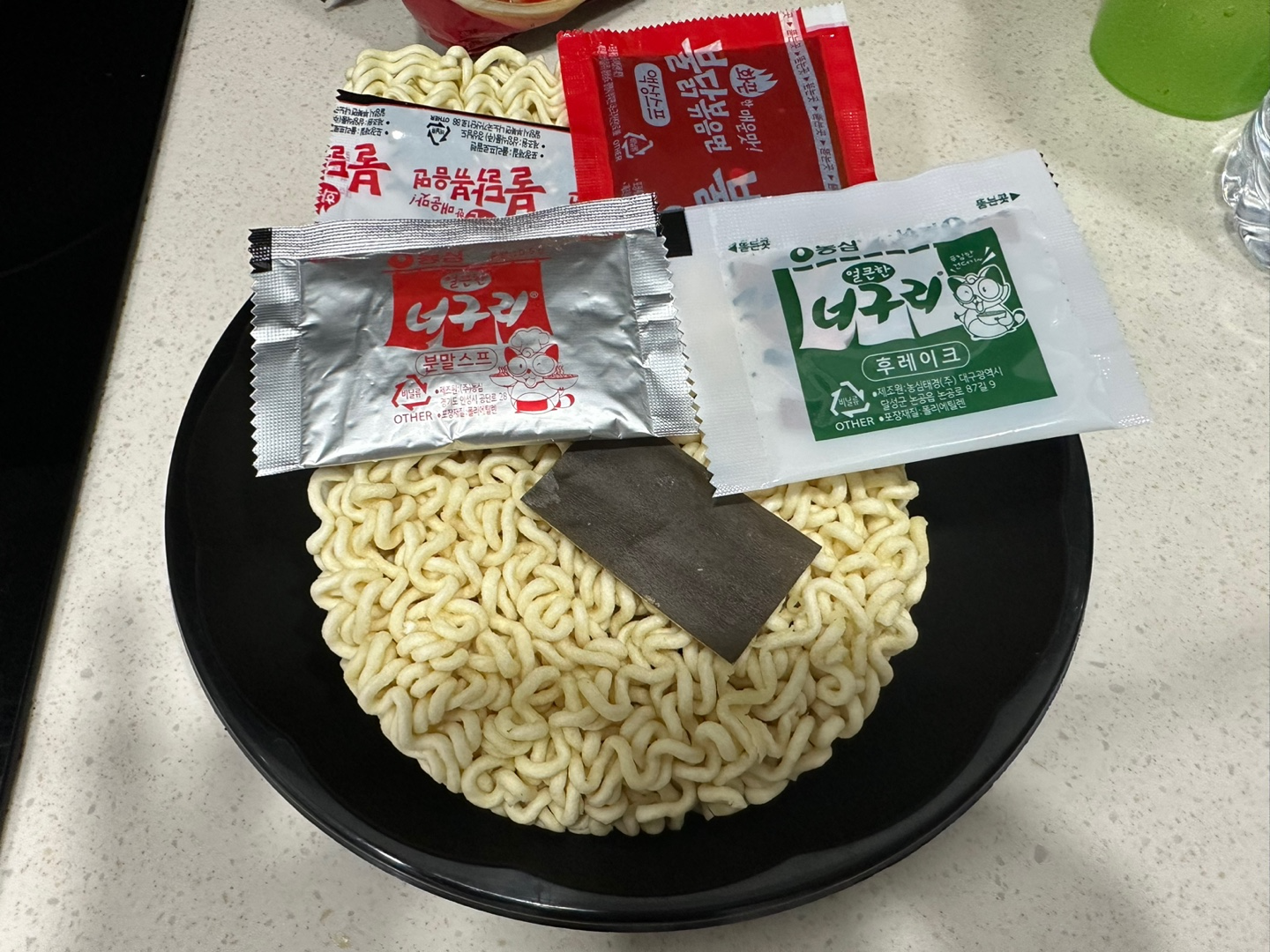 액상 스프는 다 넣고 너구리 스프는 반만 넣어 주는게 레시피 이긴 한데 개인적으로 3분의 2정도가 딱 좋았던것 같습니다